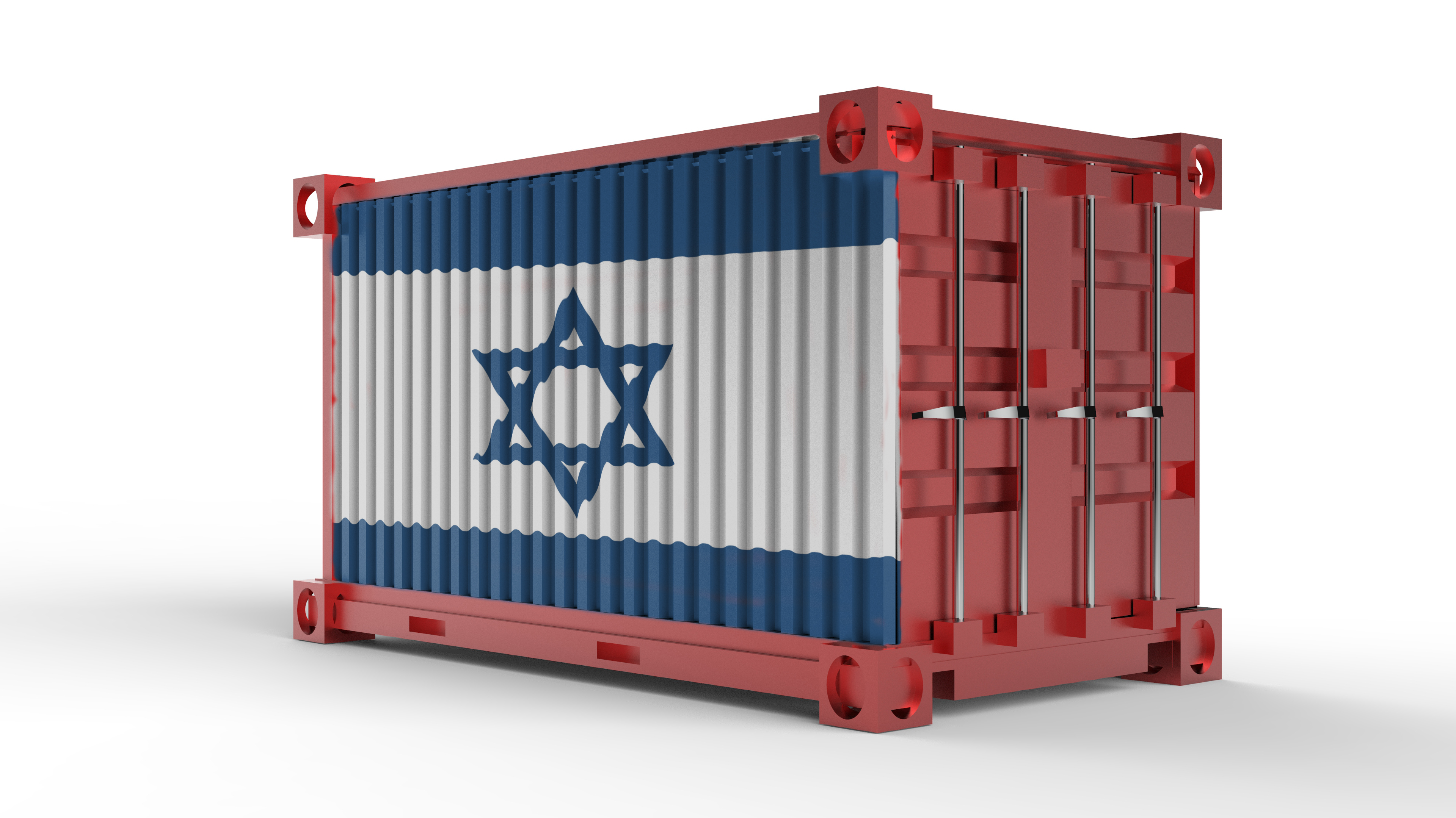 Previous Image Next Image 3d rendering of a shipping cargo container with Israel flag 3d rendering of a shipping cargo container with Israel flag isolated on white background